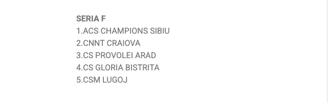 17:00 – ACS Champions Sibiu A LPS Cetate Deva